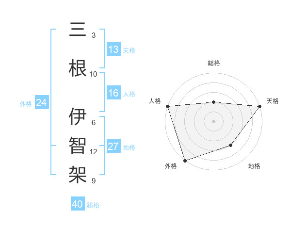 三根 伊智架さんの外格は24画の5点!