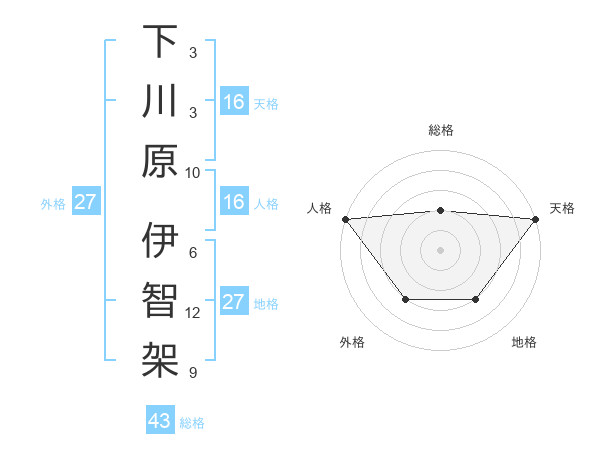 下川原 伊智架さんを姓名の画数から五運を鑑定