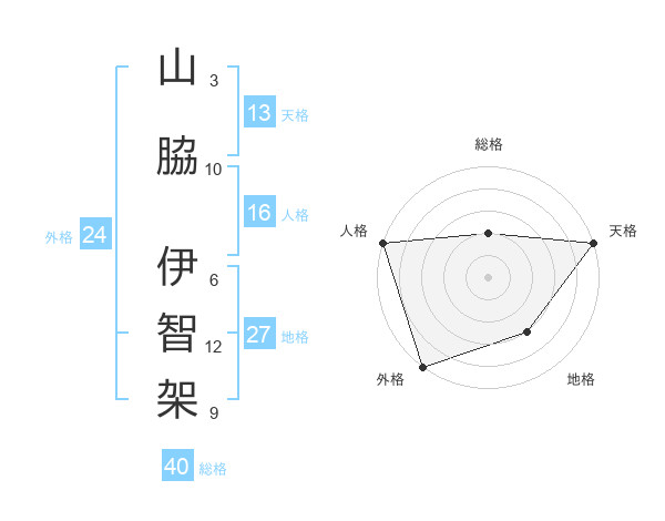 山脇 伊智架さんの外格は24画の5点!