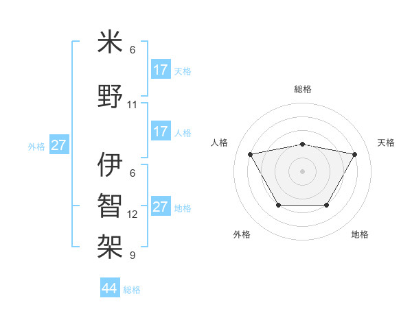 米野 伊智架さんを姓名の画数から五運を鑑定
