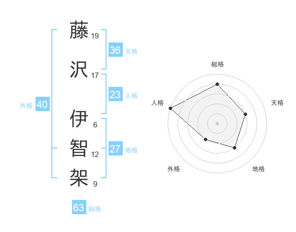 藤沢 伊智架さんの総格は63画の4点!