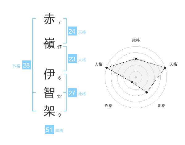 赤嶺 伊智架さんの総格は51画の3点!
