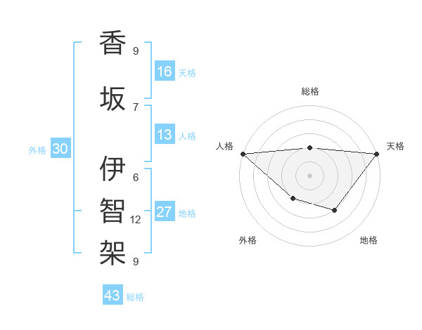 香坂 伊智架さんの総格は43画の2点!