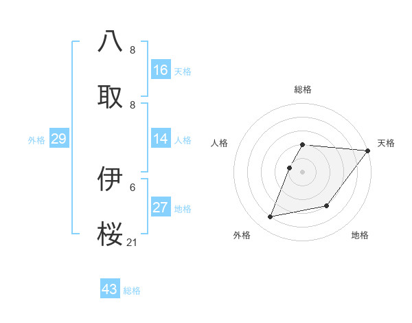 八取 伊桜さんを姓名の画数から五運を鑑定