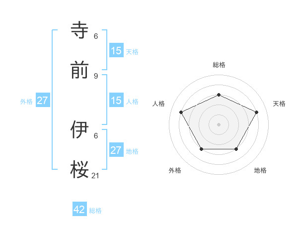 寺前 伊桜さんを姓名の画数から五運を鑑定