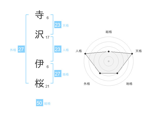 寺沢 伊桜さんの総格は50画の2点!