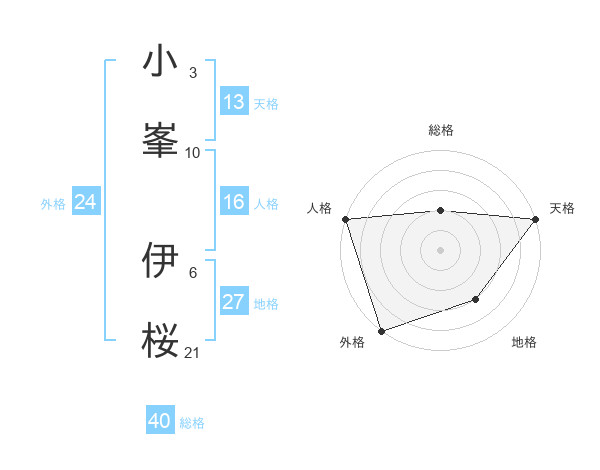 小峯 伊桜さんを姓名の画数から五運を鑑定