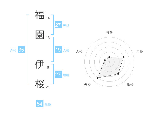 福園 伊桜さんを姓名の画数から五運を鑑定
