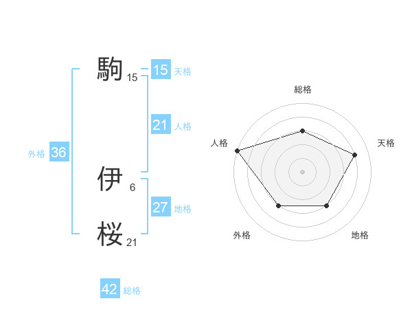 駒 伊桜さんの人格は21画の5点!
