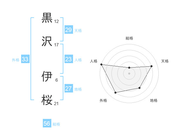 黒沢 伊桜さんを姓名の画数から五運を鑑定