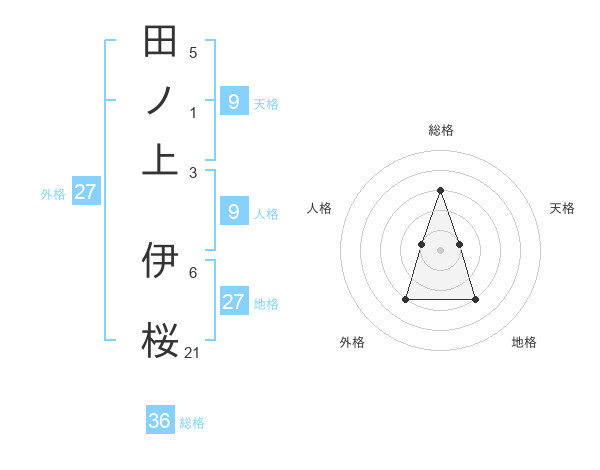 田ノ上 伊桜さんを姓名の画数から五運を鑑定