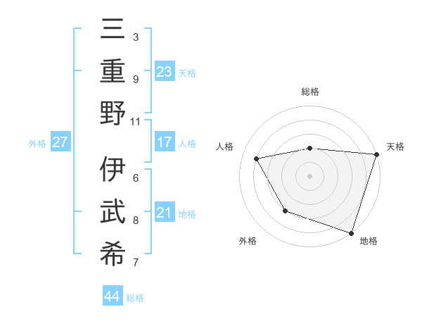 三重野 伊武希さんを姓名の画数から五運を鑑定