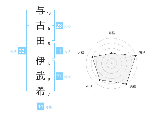 与古田 伊武希さんを姓名の画数から五運を鑑定