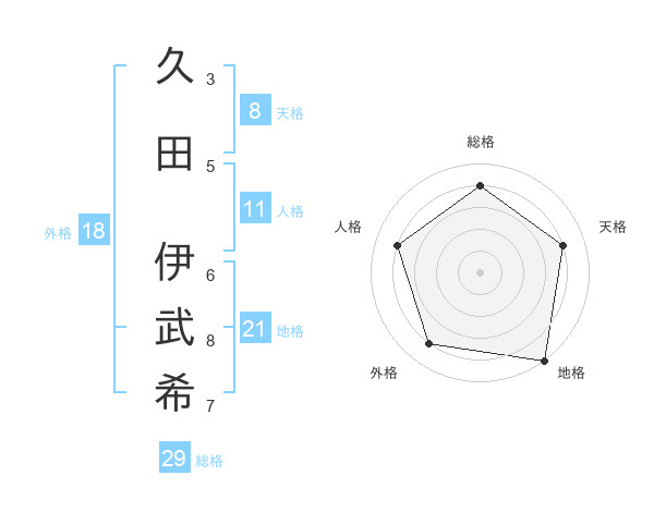 久田 伊武希さんを姓名の画数から五運を鑑定