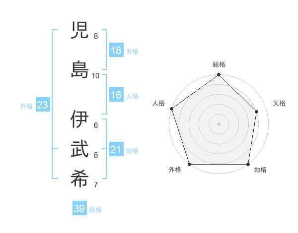児島 伊武希さんを姓名の画数から五運を鑑定