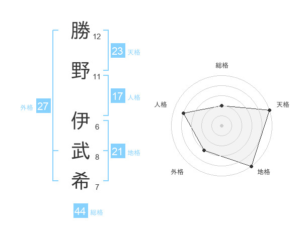 勝野 伊武希さんの天格は23画の5点!