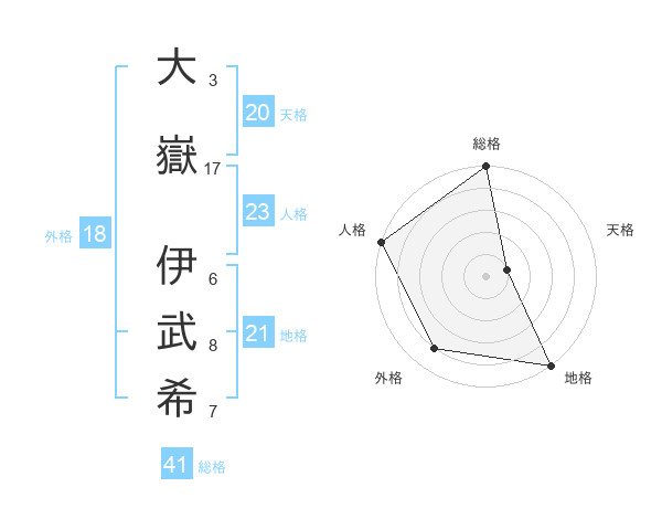 大嶽 伊武希さんを姓名の画数から五運を鑑定