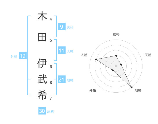 木田 伊武希さんの総格は30画の2点!
