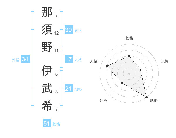 那須野 伊武希さんを姓名の画数から五運を鑑定