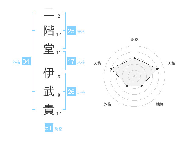 二階堂 伊武貴さんを姓名の画数から五運を鑑定