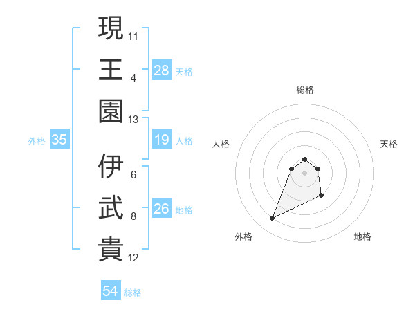 現王園 伊武貴さんを姓名の画数から五運を鑑定