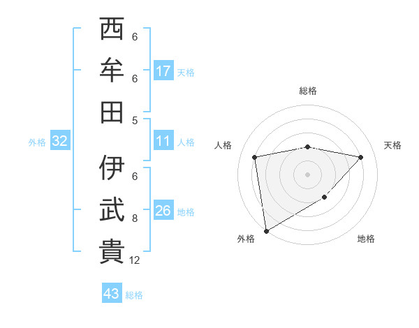 西牟田 伊武貴さんを姓名の画数から五運を鑑定