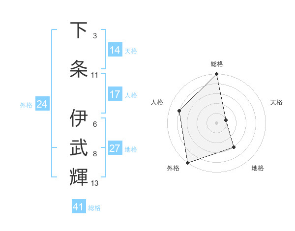 下条 伊武輝さんを姓名の画数から五運を鑑定