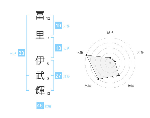冨里 伊武輝さんを姓名の画数から五運を鑑定
