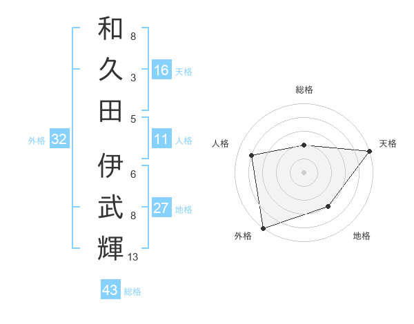 和久田 伊武輝さんを姓名の画数から五運を鑑定