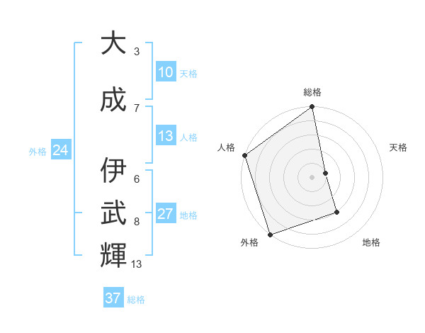 大成 伊武輝さんを姓名の画数から五運を鑑定