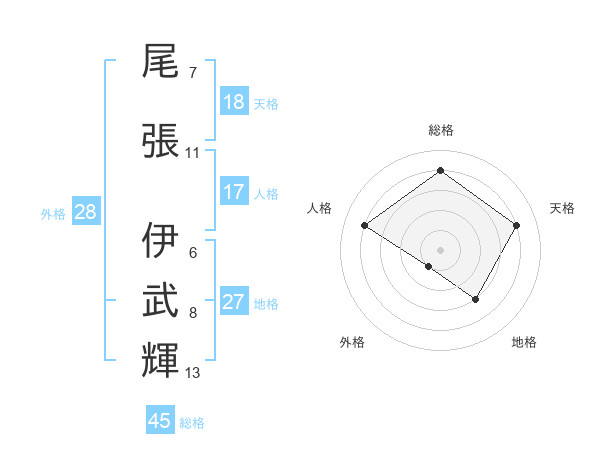 尾張 伊武輝さんを姓名の画数から五運を鑑定
