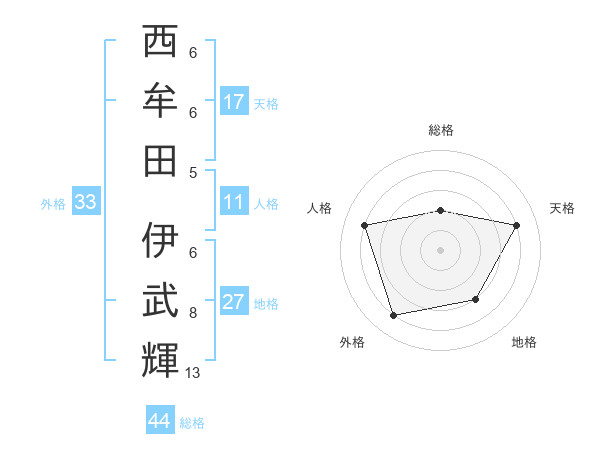 西牟田 伊武輝さんを姓名の画数から五運を鑑定