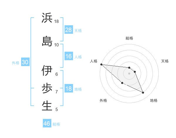 浜島 伊歩生さんを姓名の画数から五運を鑑定