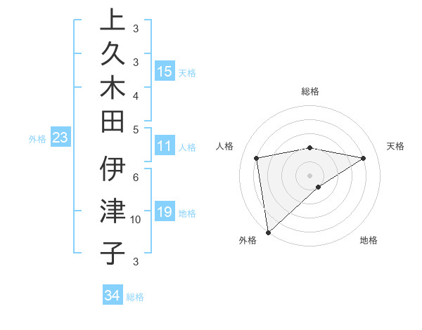 上久木田 伊津子さんを姓名の画数から五運を鑑定