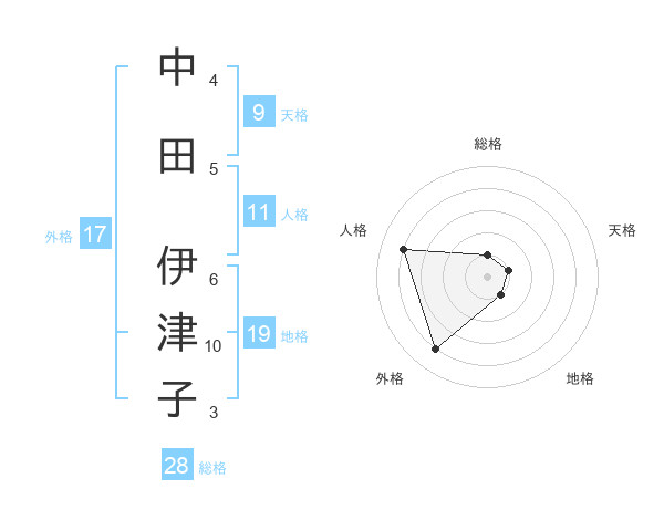 中田 伊津子さんの総格は28画の1点!