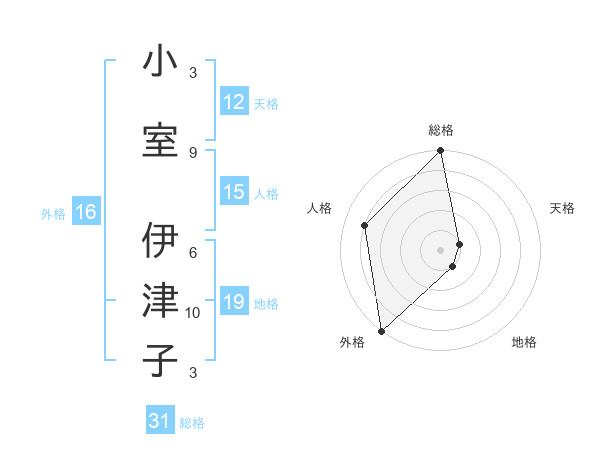 小室 伊津子さんの天格は12画の1点!