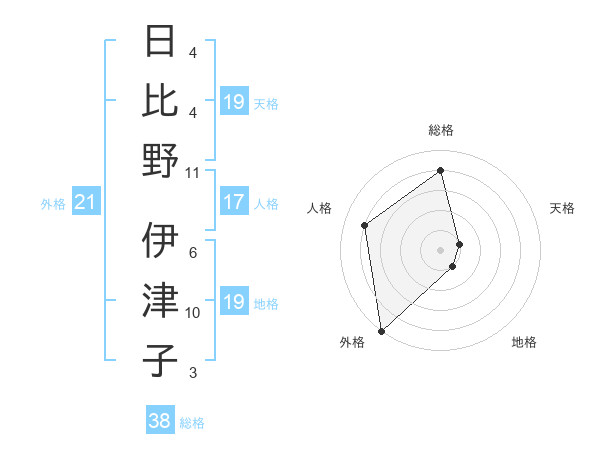 日比野 伊津子さんの総格は38画の4点!
