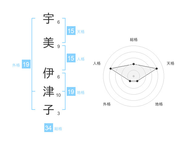 宇美 伊津子さんの天格は15画の4点!