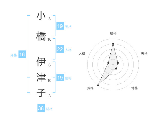 小橋 伊津子さんの総格は38画の4点!