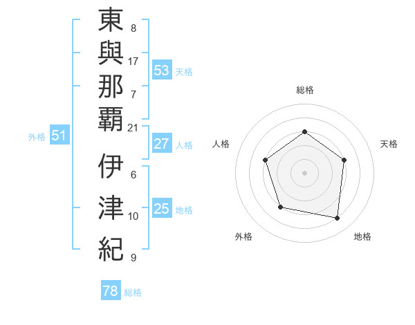 東與那覇 伊津紀さんを姓名の画数から五運を鑑定