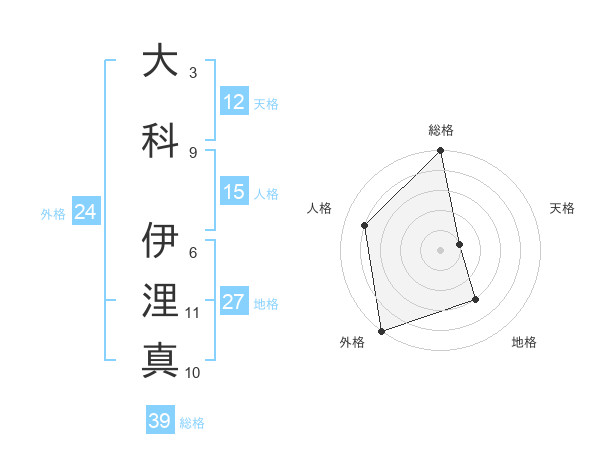 大科 伊浬真さんを姓名の画数から五運を鑑定