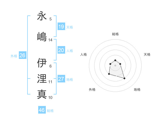 永嶋 伊浬真さんを姓名の画数から五運を鑑定