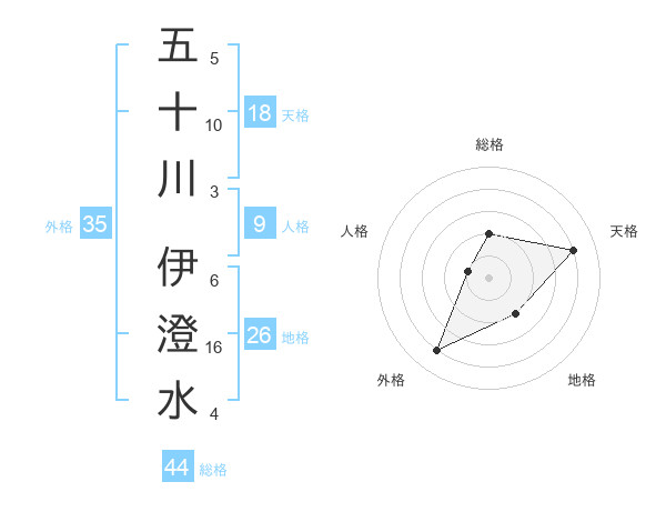 五十川 伊澄水さんを姓名の画数から五運を鑑定