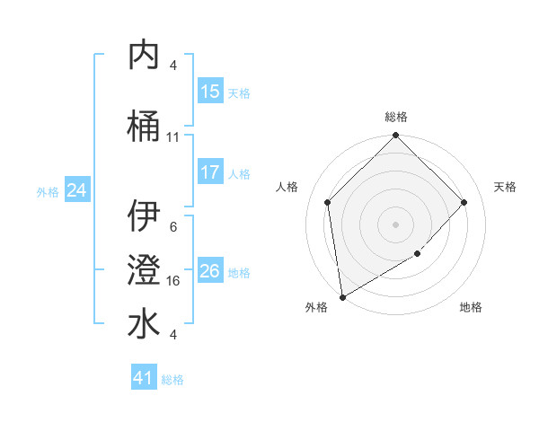 内桶 伊澄水さんの総格は41画の5点!