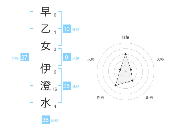 早乙女 伊澄水さんを姓名の画数から五運を鑑定