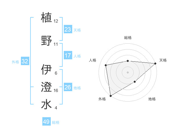植野 伊澄水さんを姓名の画数から五運を鑑定