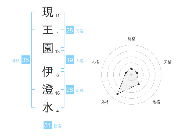 現王園 伊澄水さんを姓名の画数から五運を鑑定