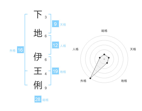 下地 伊王俐さんを姓名の画数から五運を鑑定