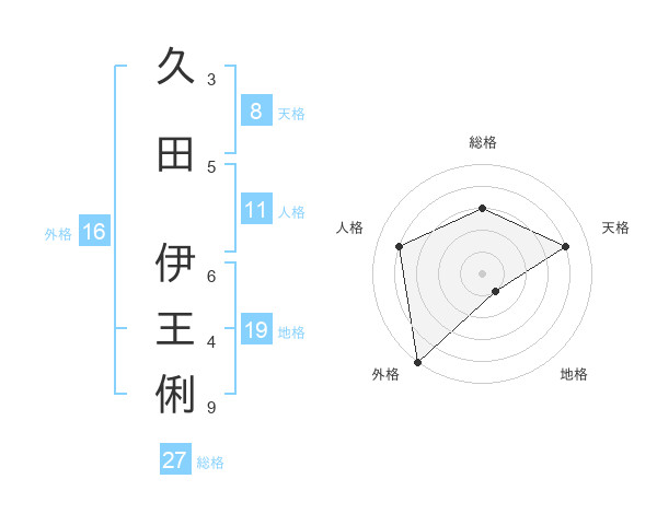 久田 伊王俐さんを姓名の画数から五運を鑑定