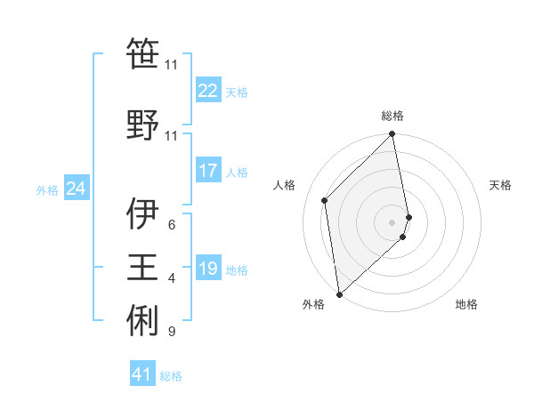 笹野 伊王俐さんを姓名の画数から五運を鑑定